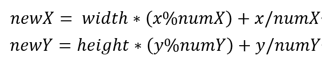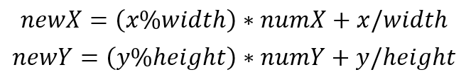 其中width,height为小块的宽度和长度,numX,numY是分块的数量,x,y是原始像素的位置。
