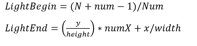 其中width,height为小块的宽度和长度,numX是分块X方向的数量,x,y是像素的位置,num为分块总数量,N为光源总数量。
