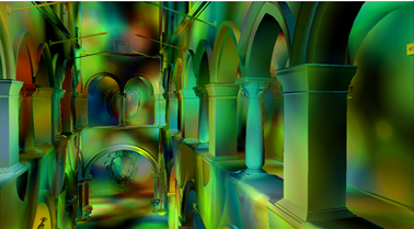 实现步骤:(a) 计算Gbuffer->(b) 分块(分成多个低分辨率小场景)->(c) 单独计算光照->(d) 组合(将计算完之后的小场景合并为一个大场景)->(e) 边缘检测(为了后面高斯模糊使用)->(f) 高斯模糊(后面会讲原因)->(g) 融合(讲纹理和光照结果进行相乘,如果在计算光照就把纹理带上,那么高斯模糊会讲纹理也一并模糊了)。