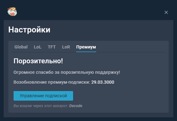 Now premium will work wherever there is a subscription through Overwolf in any App