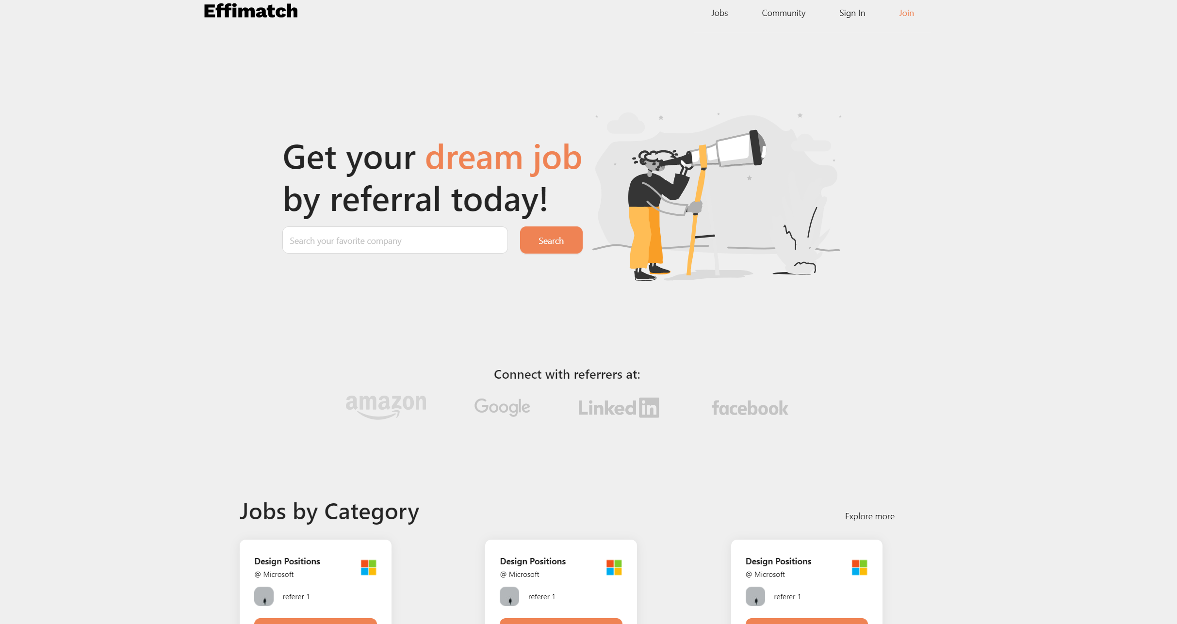EffiMatch is a platform to facilitate job referring process for both job-seekers and referrals.