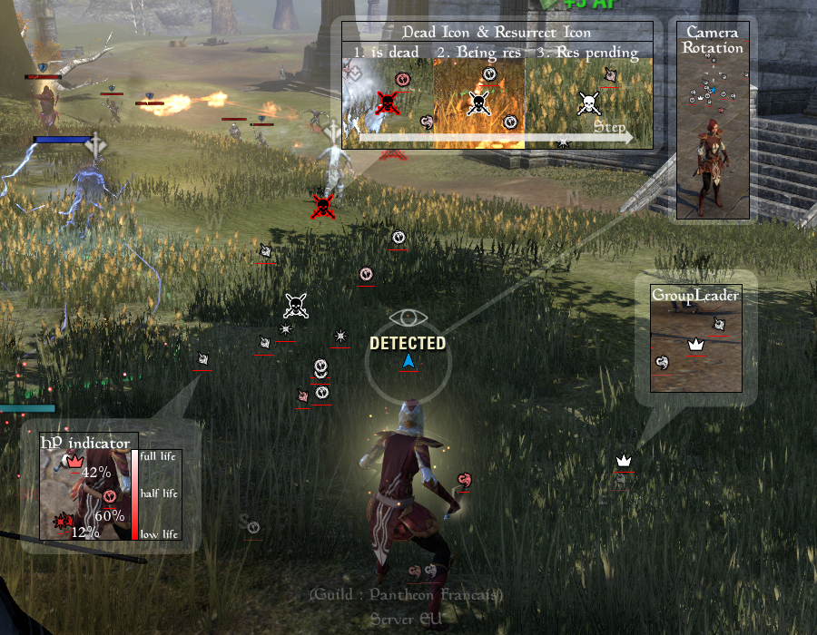 TeamFormation is a user Interface for The Elder Scrolls Online, designed to show the positions and health of your teammates, like a radar.