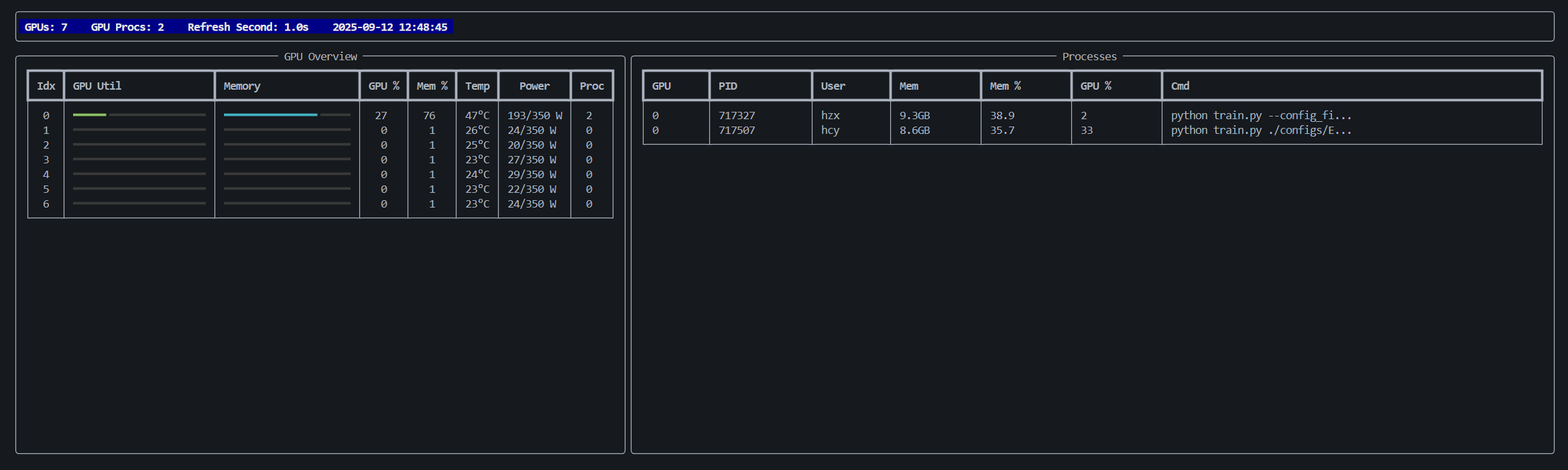 GPU_Watcher Alternative of nvitop. Faster than nvitop, lighter than nvitop too, but similar to nvitop capacities. Refresh per second defaultly. Usage python gpu_watcher.py Ctrl-C to exit. Overview