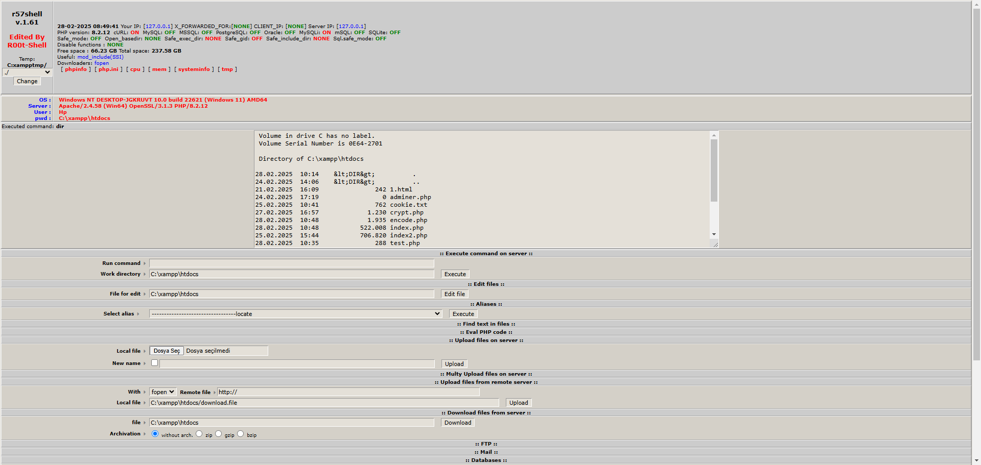 R57 Shell is typically uploaded to a server as a PHP file. The attacker executes this file to control the server through a web-based interface. Here’s an example:
