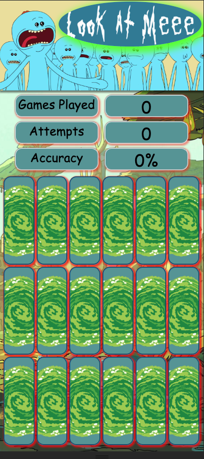 A javascript memory match game theme from Rick and Morty