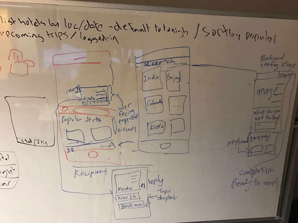 - Recipients can tap into the postcard to view it, and can reply with their own postcard. In that "view the postcard" view, they can then choose to tap on "Book now!" which will deeplink into ExpediaBookings with a flight (or hotel?) search for the destination depicted in the postcard.