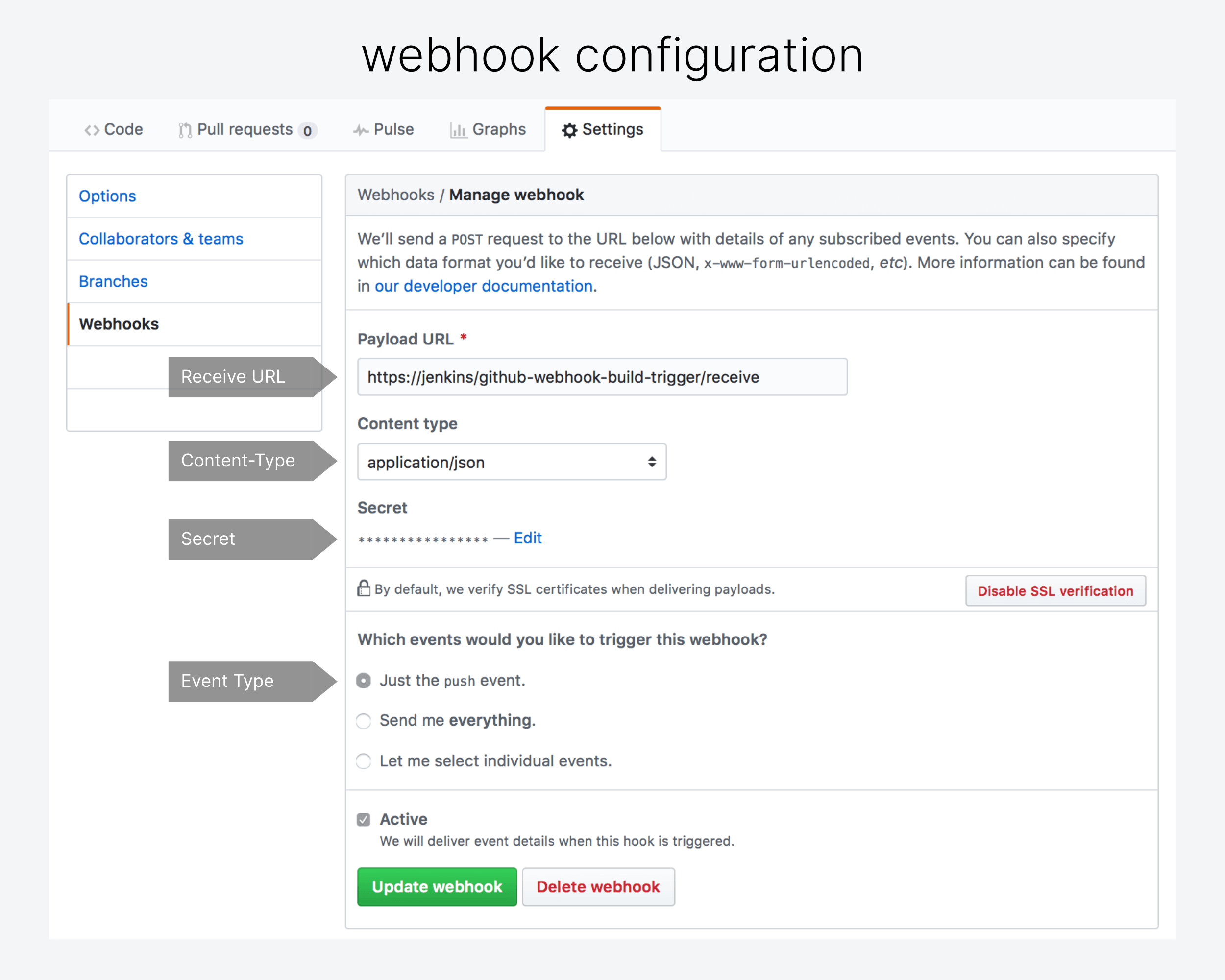 - I want my Jenkins jobs triggered exclusively via GitHub Webhook Push Events.