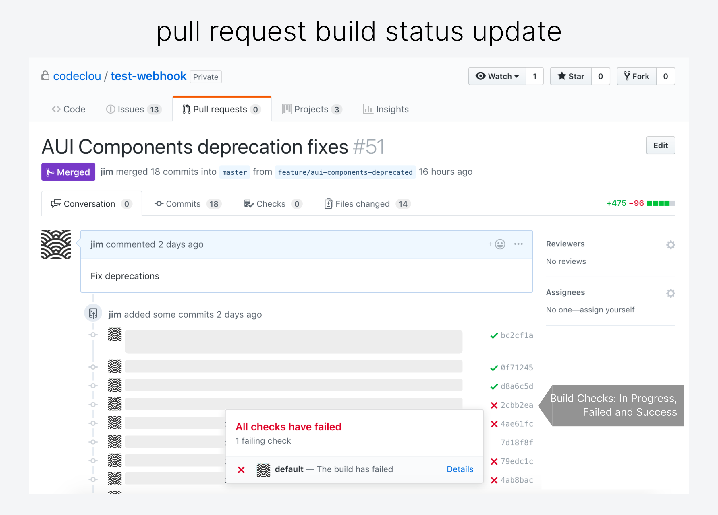 ' -d \'{ "state": "failure", "context": "Jenkins", "target_url": "' + env.BUILD_URL + '", "description": "The build has failed" }\' '
