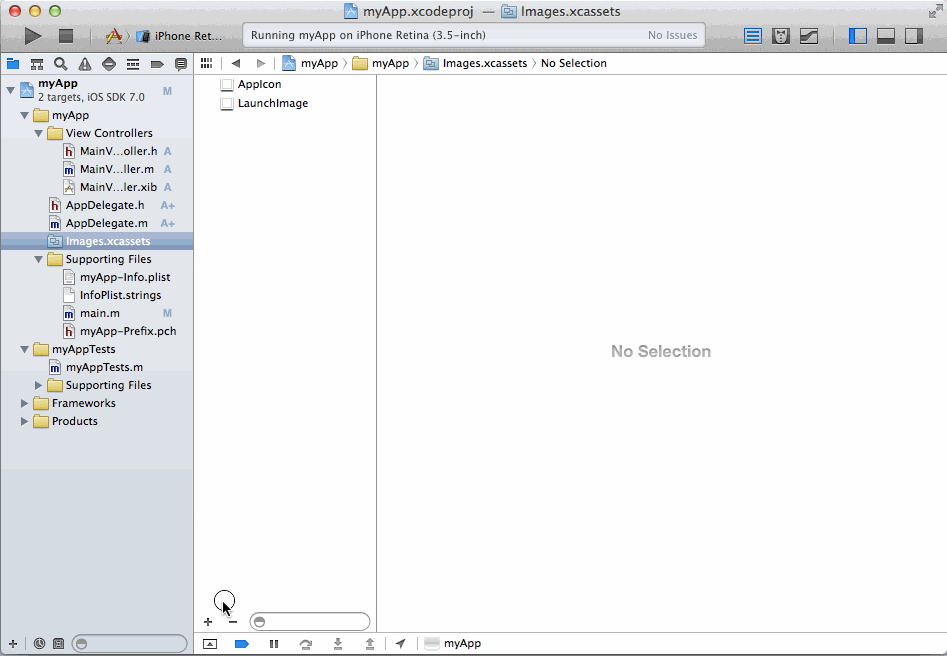 Asset Catalogs are a new feature in XCode 5, and it makes asset management easy. To add assets to a project, follow the steps below.