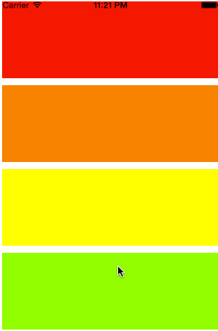 @endWhat is shown in the scrollable content area of a scroll view is determined by its subviews. The frame of each subview is relative to the top left of the content area. A scroll view can contain more than one subview. In this example we add a series differently-colored subviews. Each subview has the same width as the scroll view, but we offset the top of their frames so they do not overlap each other.
