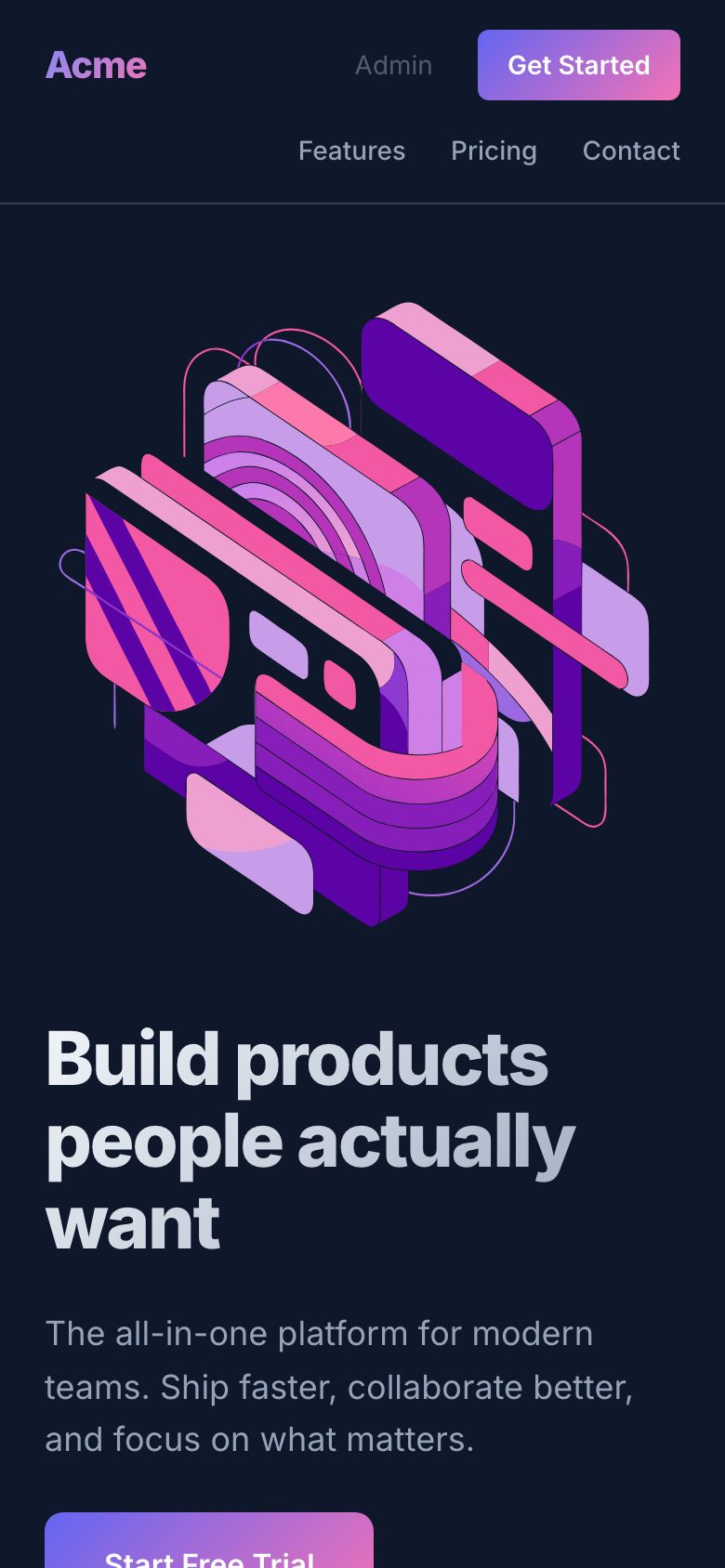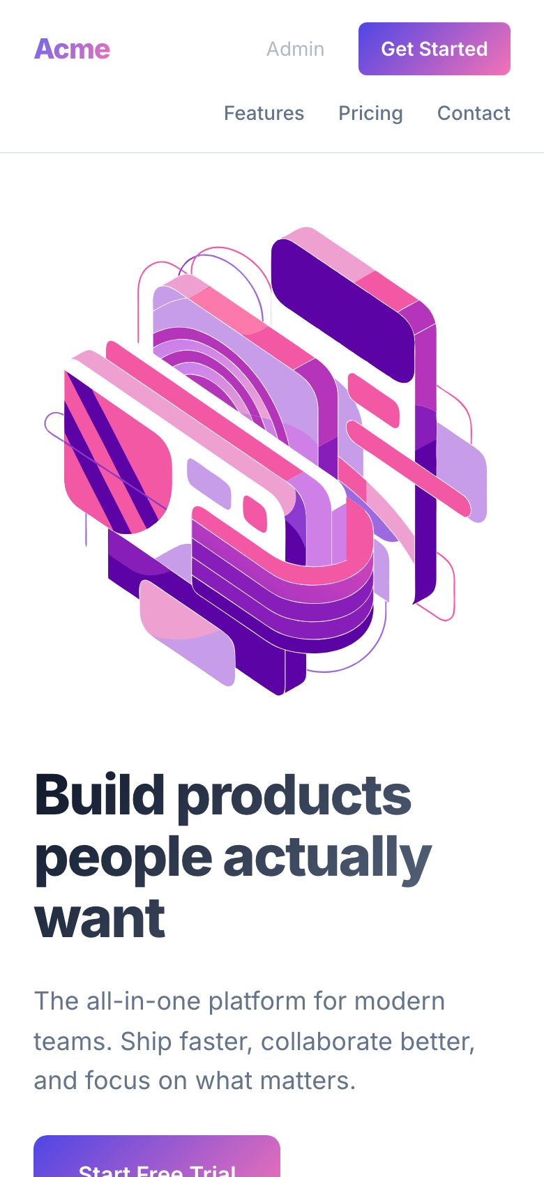 - Hero section with CTAs