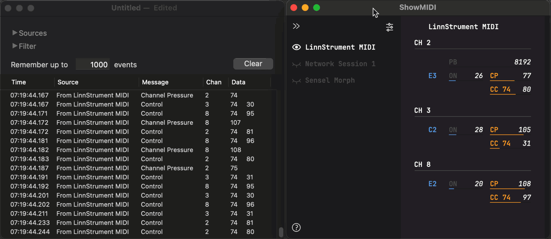 ShowMIDI displays: