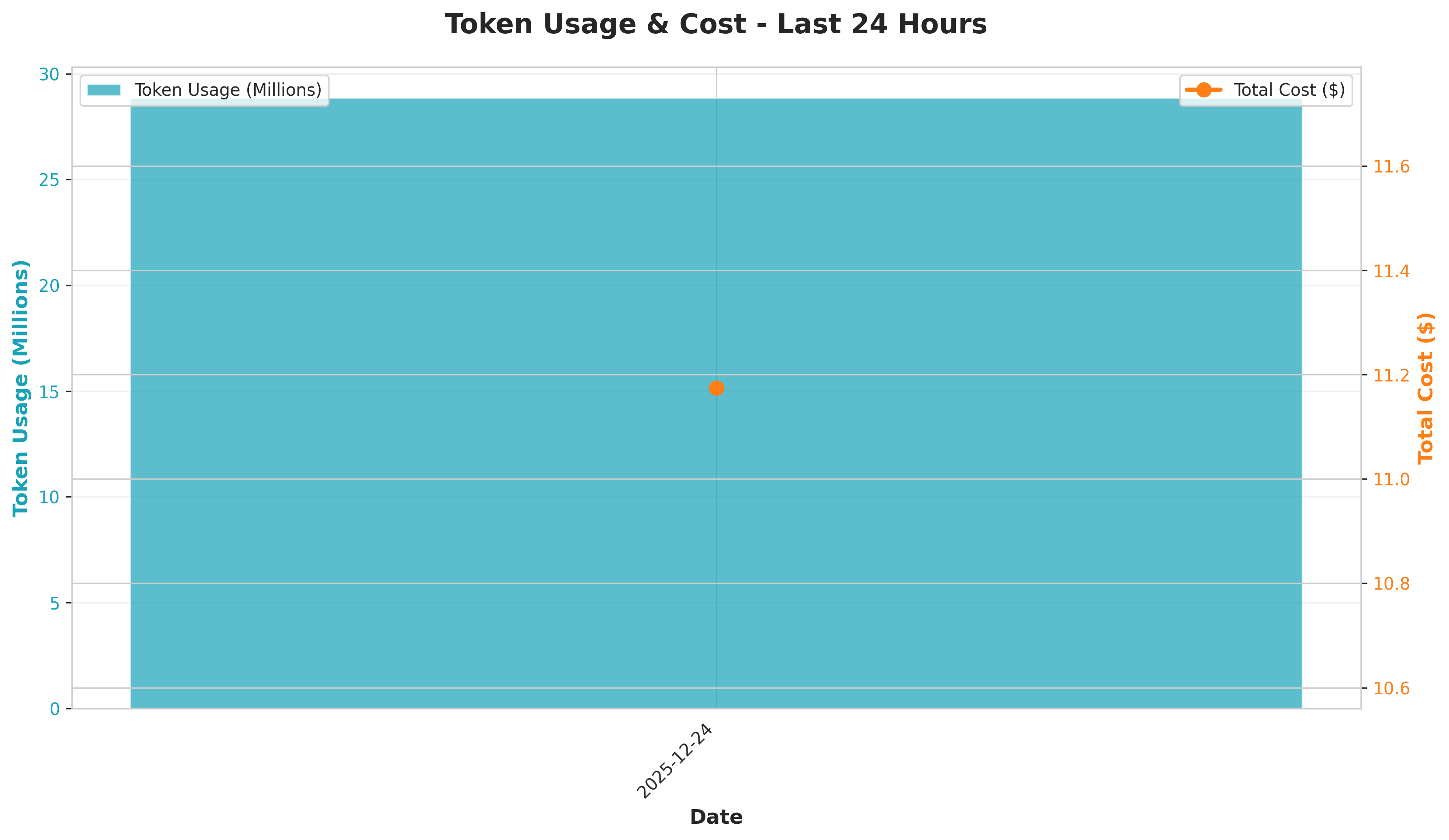 Analysis: Daily cost of $11.17 with 28.9M tokens consumed represents a 49% cost increase compared to the previous audit ($7.50). This higher spend correlates with the increased failure rate - failed workflows still consume tokens before terminating.