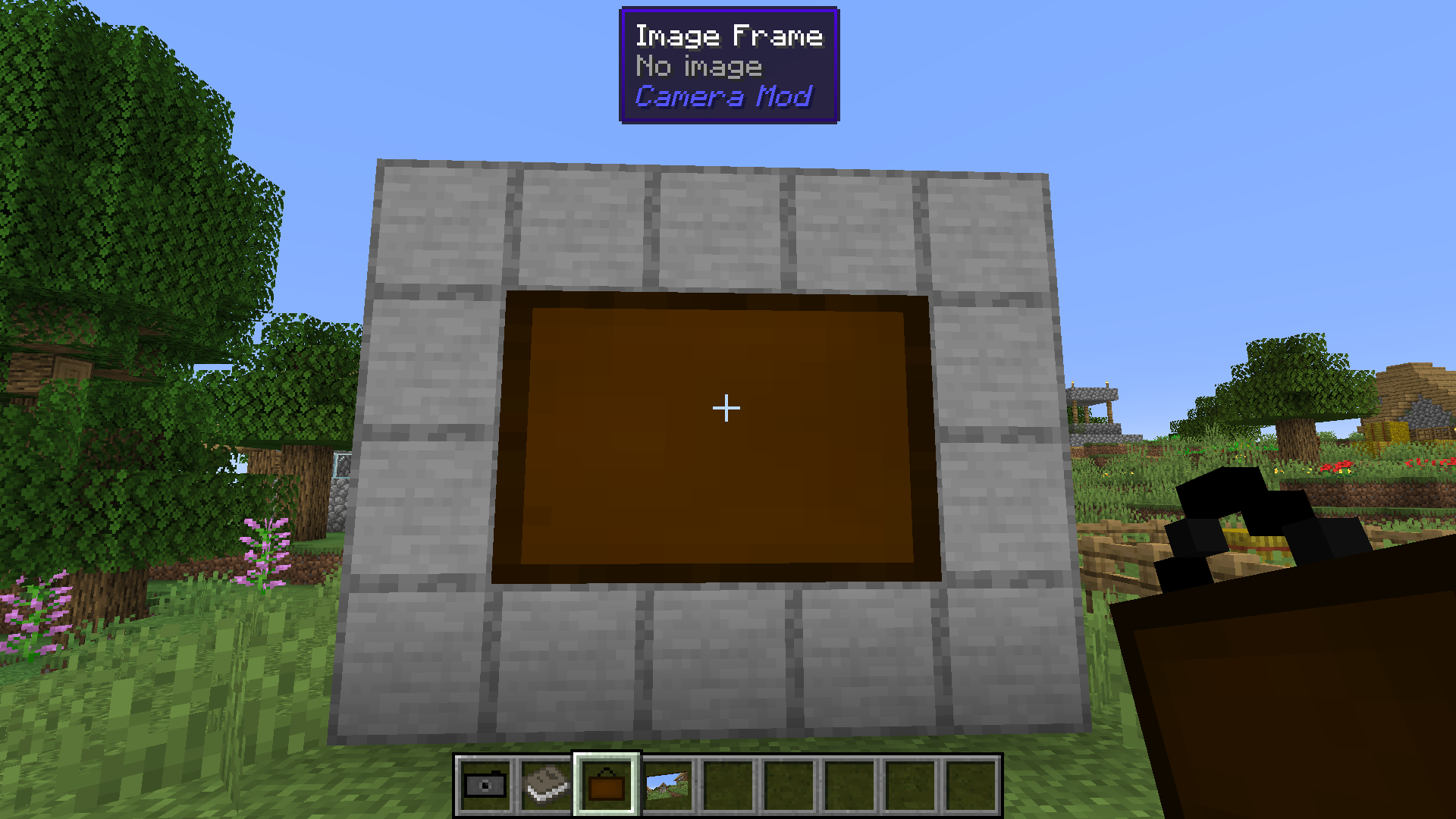 The image frame allows you to place your image in the world. Just place the image frame item on a wall. Sneak + right-clicking the image frame opens a GUI that allows you to resize the frame. Just clicking the resize buttons enlarges the frame in the given direction. If you sneak and click the button the frame will be downsize the frame in that direction. To display an image in the frame right-click it with the chosen image in hand. To remove it from the frame just right-click the frame again.