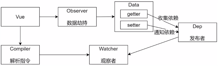 我们的指令和差值表达式都是依赖数据的,那么视图中所有依赖数据的地方都需要添加 watcher 对象。当数据改变的时候,dep 对象会通知所有的 watcher 对象重新渲染视图,所以我们需要在 Compiler 类中操作 DOMtextUpdatermodelUpdatercompileText 三个方法中来创建 watcher 对象。