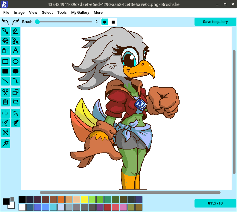 - My Gallery: Window showing images drawn in Brushshe and "saved to gallery". Images from the gallery are stored in