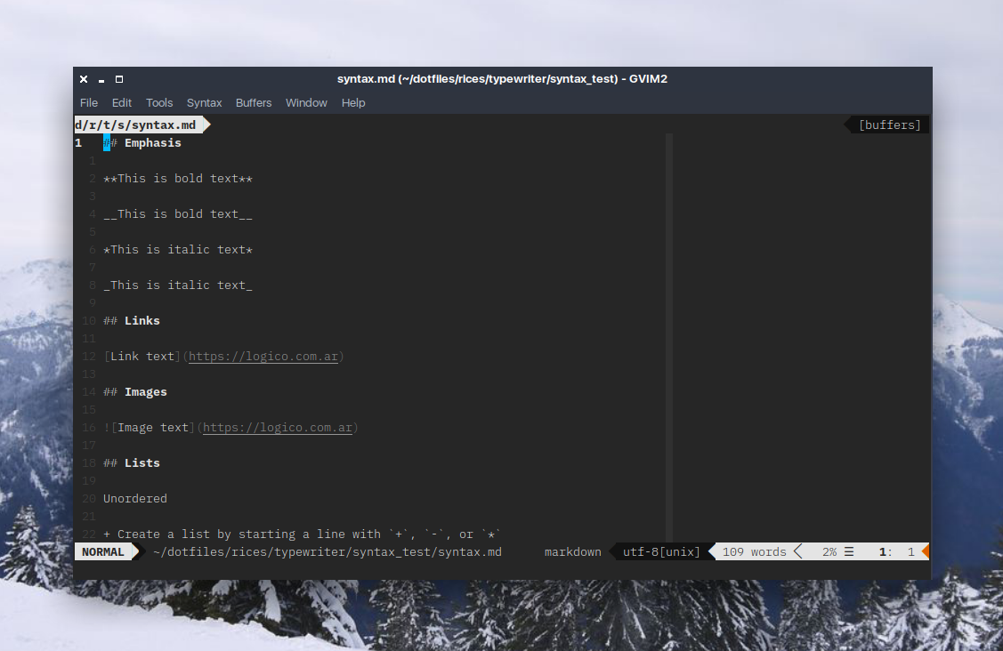 " Set typewriter as colorscheme colorscheme typewriter " Set typewriter airline theme let g:airline_theme = 'typewriter' " Activate FOCUS mode with F12 nmap <F12> :Goyo <bar> Limelight!!<CR>" " Change the cursor from block to i-beam in INSERT mode let &t_SI = "\e[5 q" let &t_EI = "\e[1 q" augroup myCmds au! autocmd VimEnter * silent !echo -ne "\e[1 q" augroup END