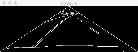 The Algorithm creates the ROI, performs the gaussian blur filter to smooth the frame in order to remove noise and perform the canny edge filter.