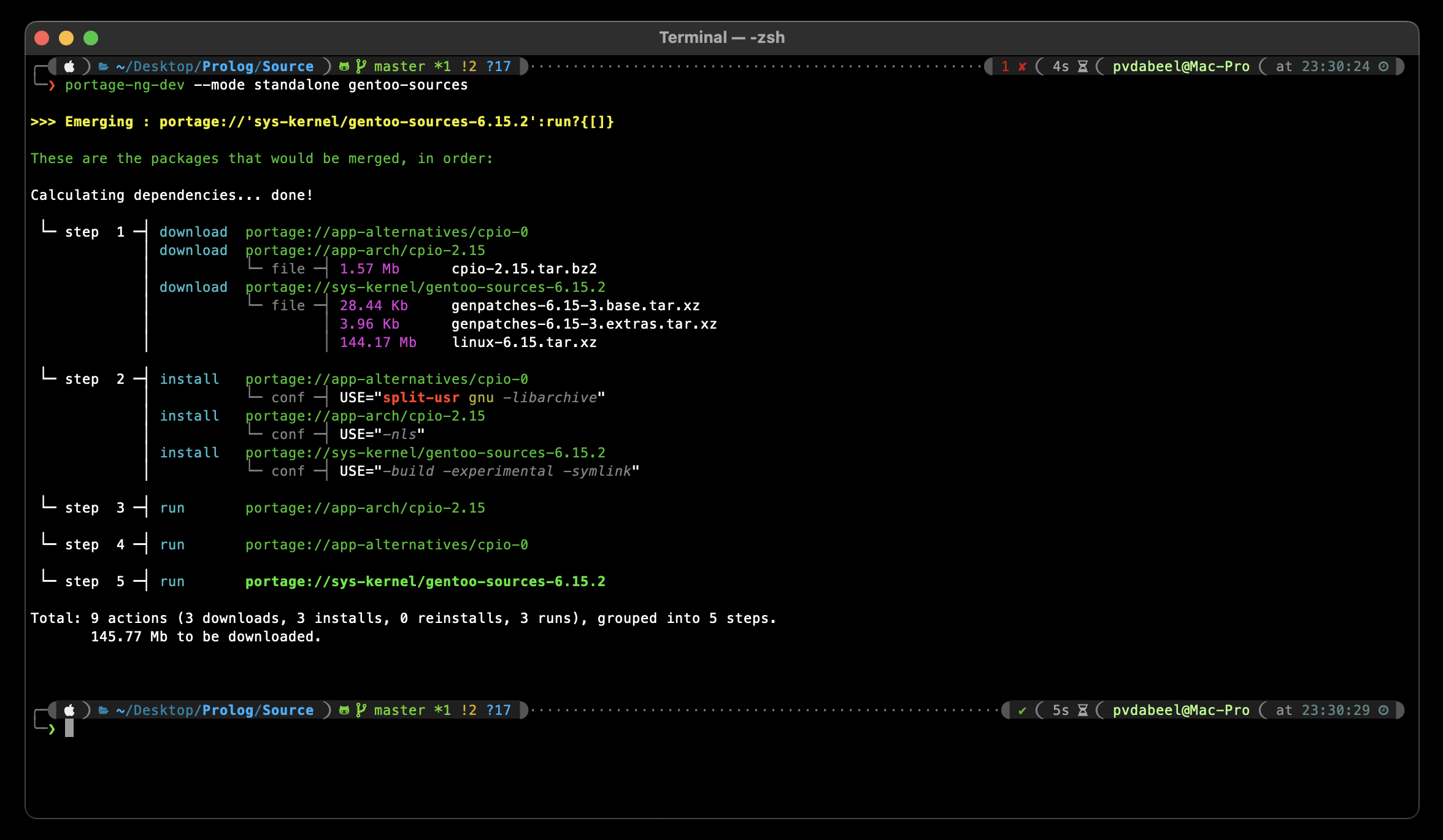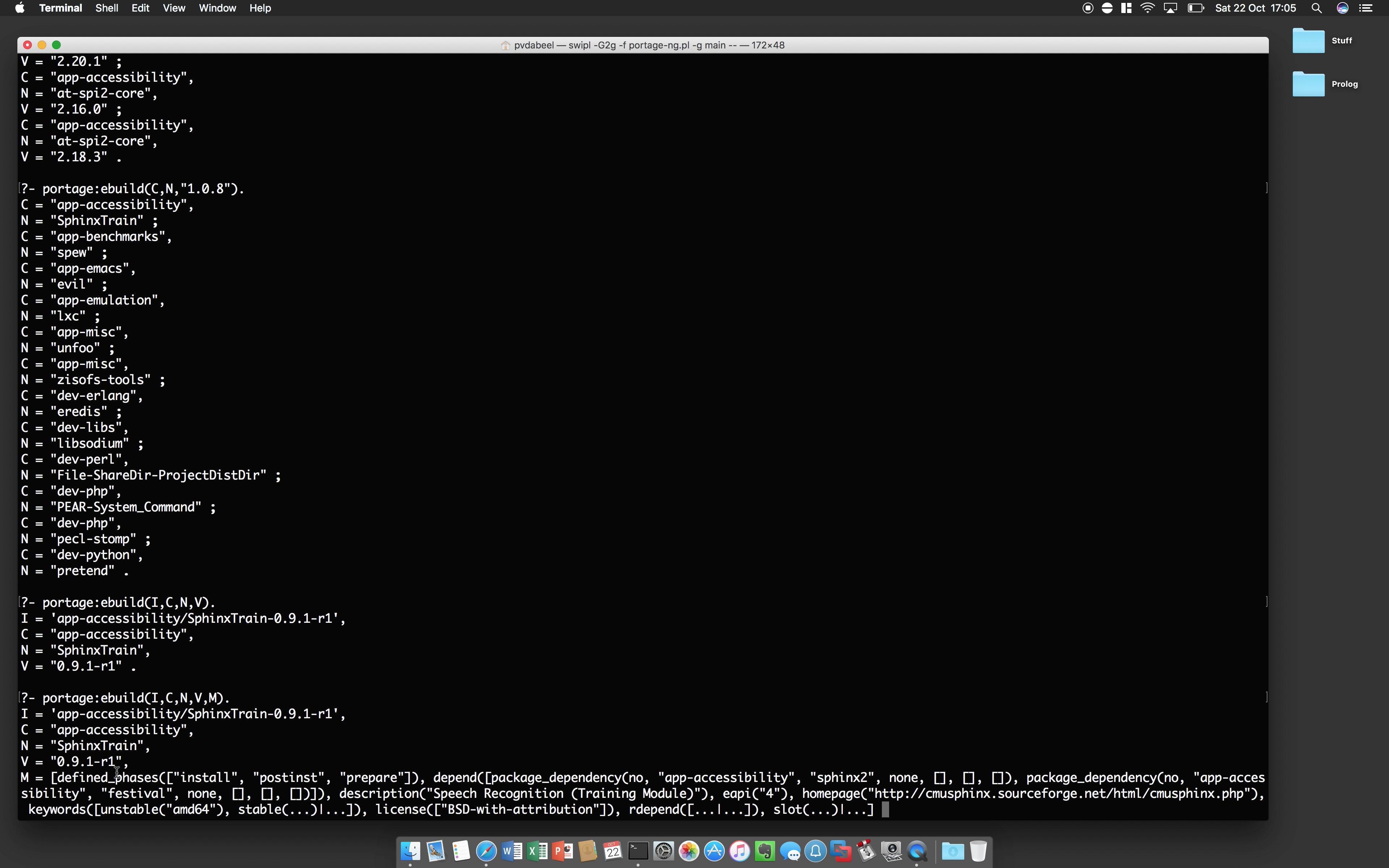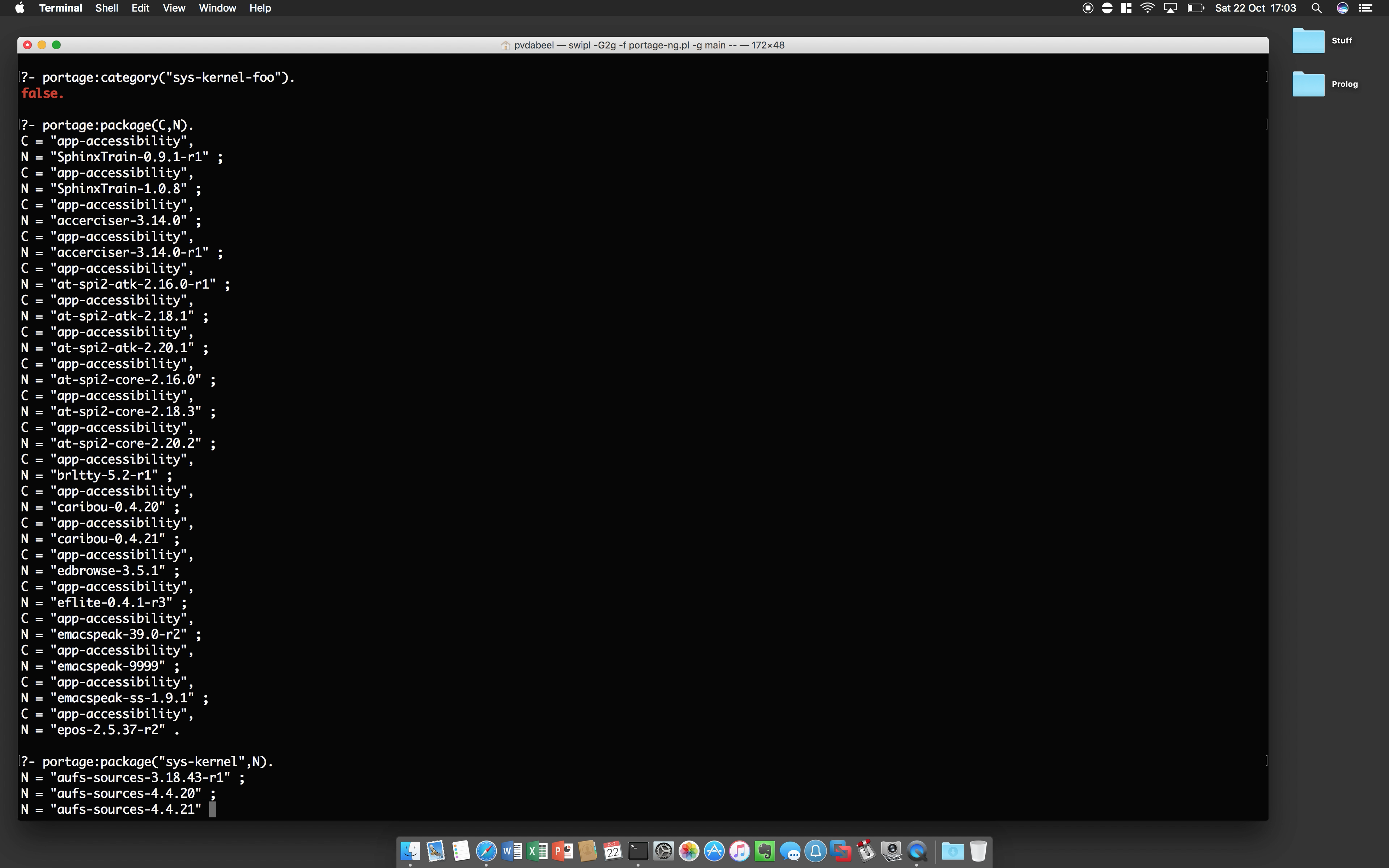In the following screenshots we show Gentoo ebuilds being read, parsed and queried using Prolog