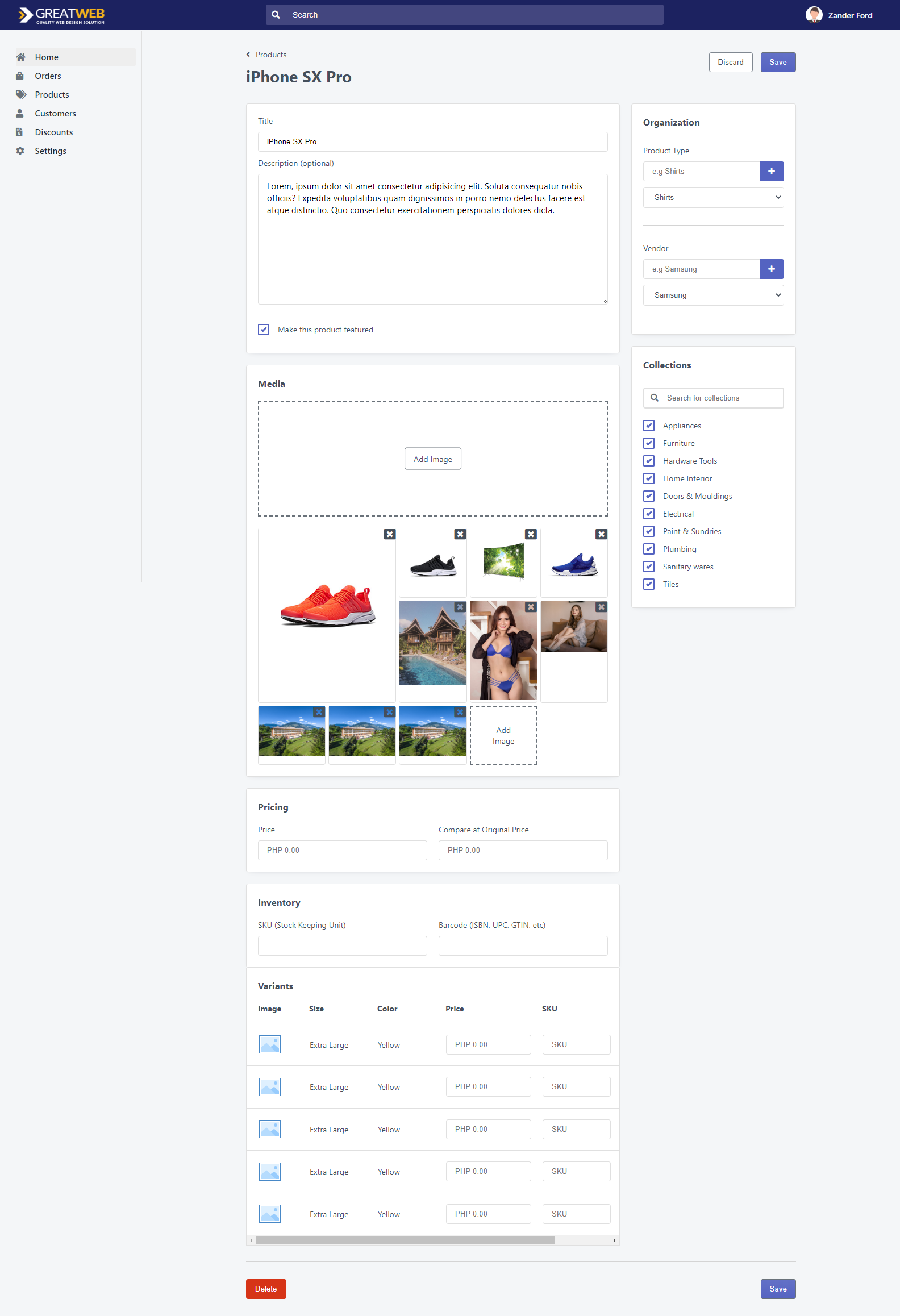 E-commerce Shopify Inpired dashboard UI made with HTML CSS Grid, SCSS