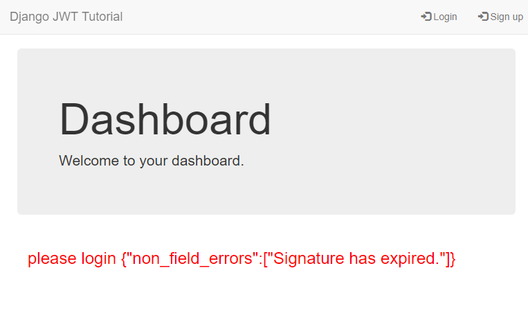 token 將會過期,並且看到下面這個畫面,因為你的 token 已經失效了。